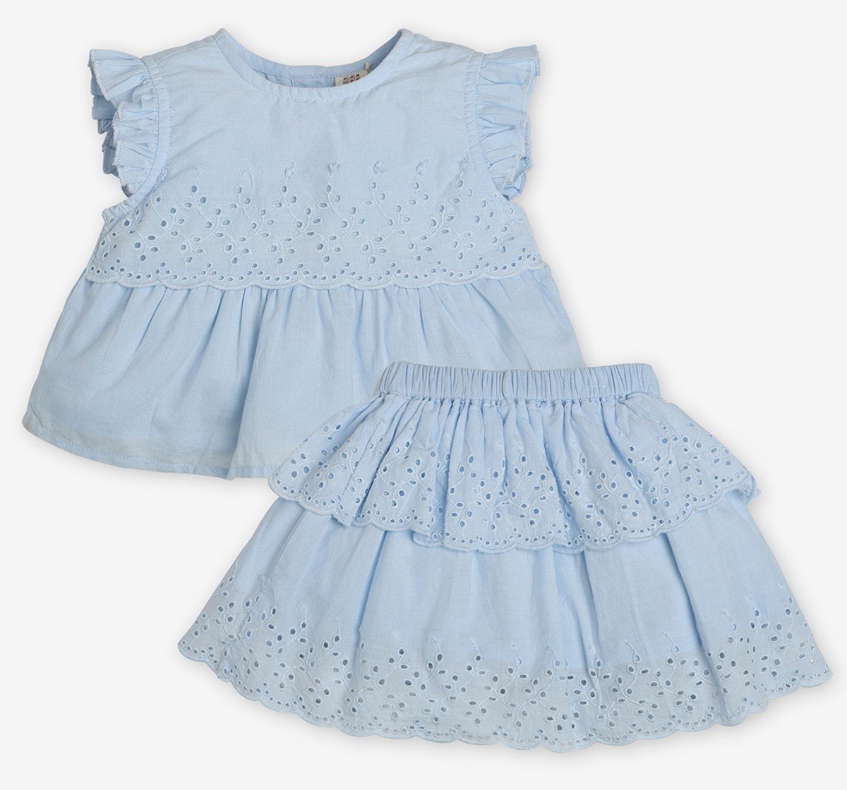 Infant Girls Schiffli Embroidered Co-Ord Set- Blue
