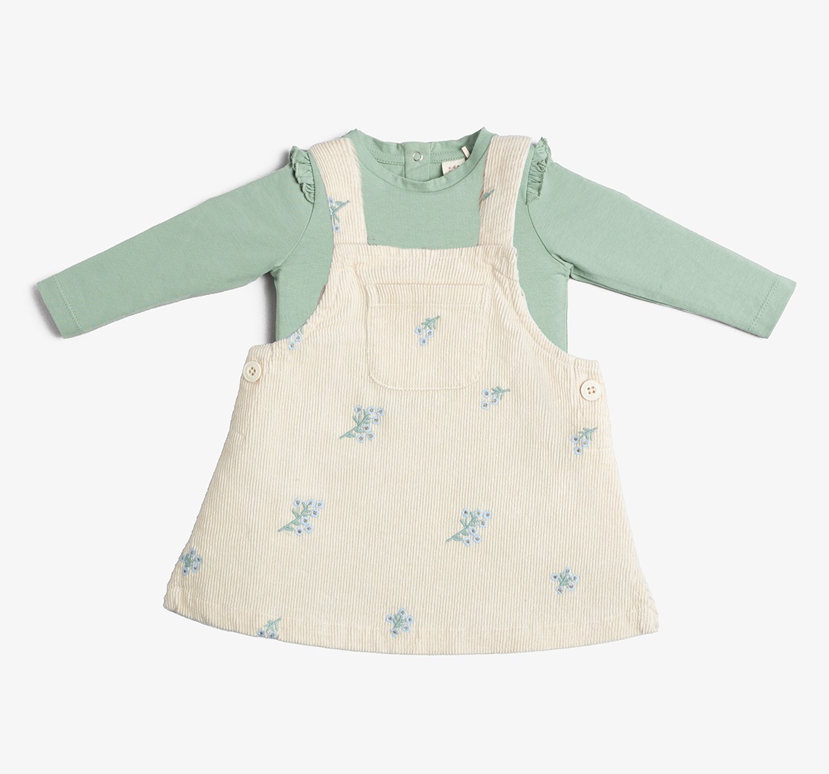 Baby Girls Pinafore Embroidered Dress With T- Shirt