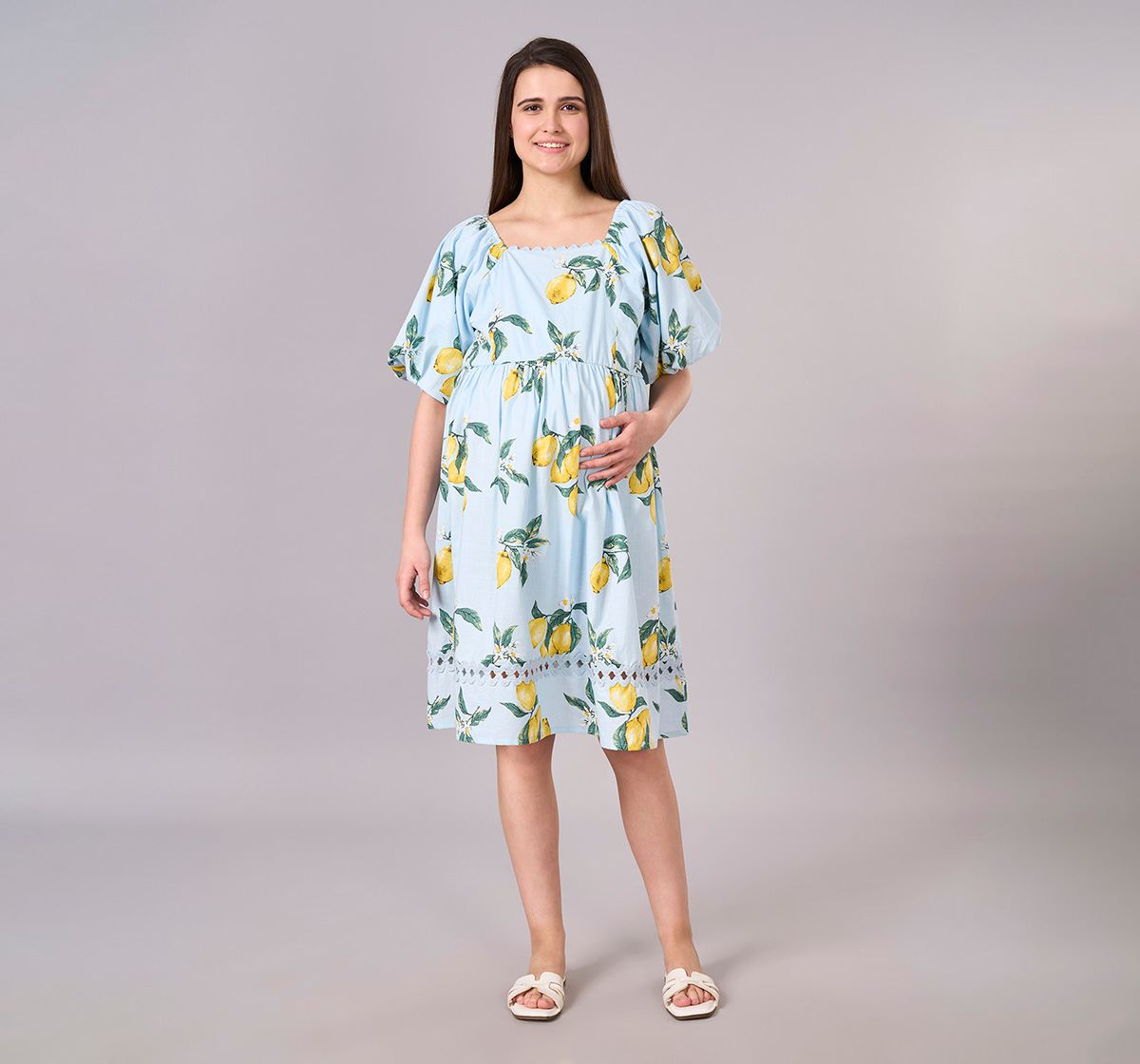 Maternity Clothing Dress Printed Light Blue