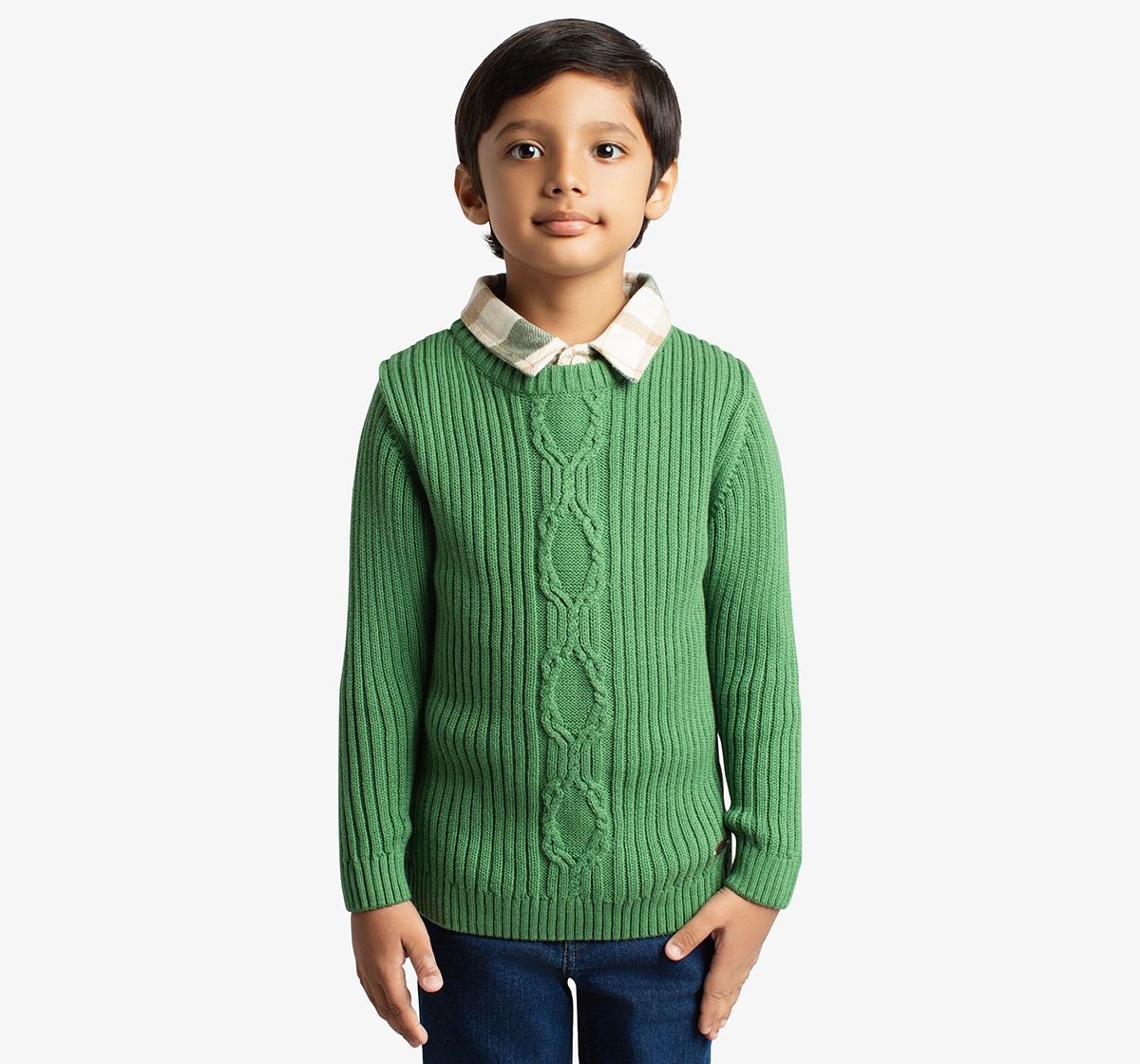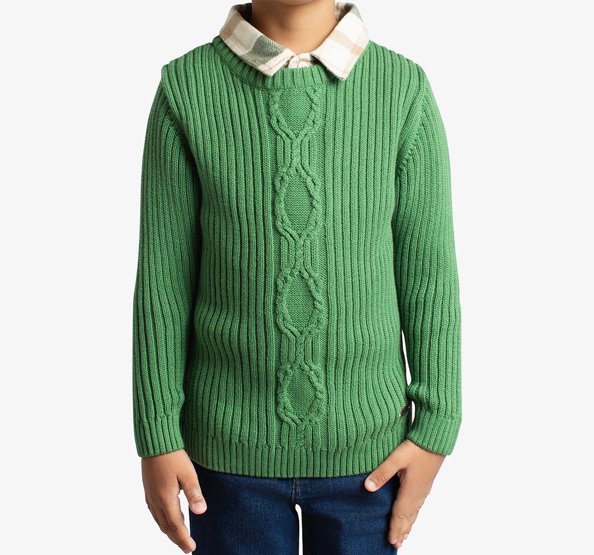 Ed-A-Mamma Boys Cable Knit Sweater With Woven Collar - Green