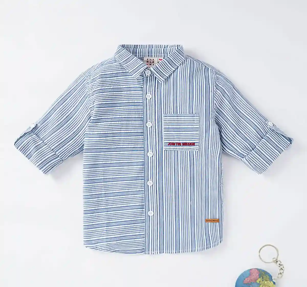 Boys Full Sleeves Y/D Seer Sucker Stripe Shirt With Embroidery At Pocket