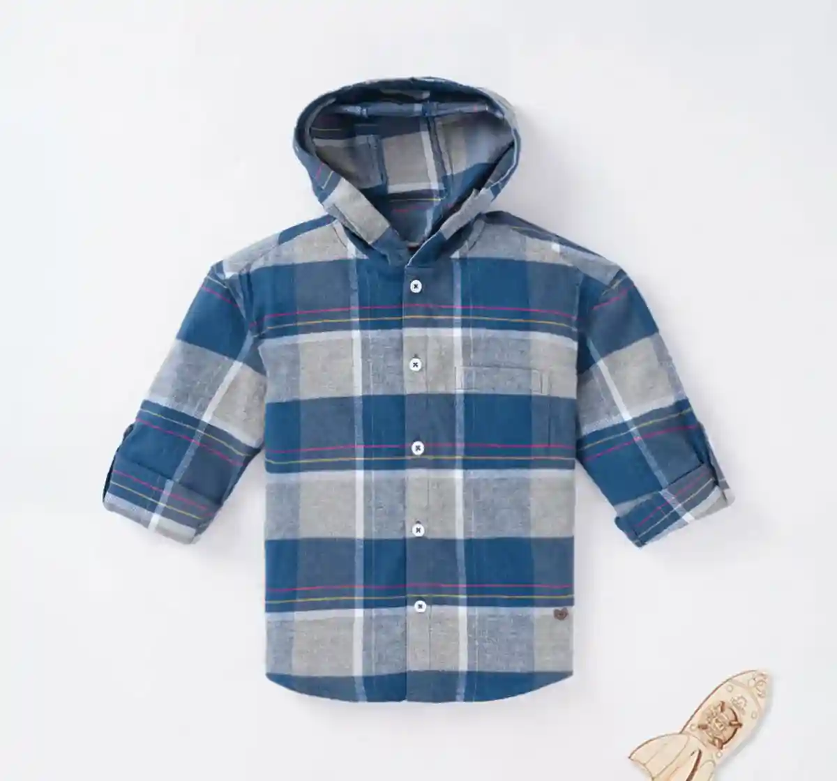 Boys Plaid Hooded Shirt