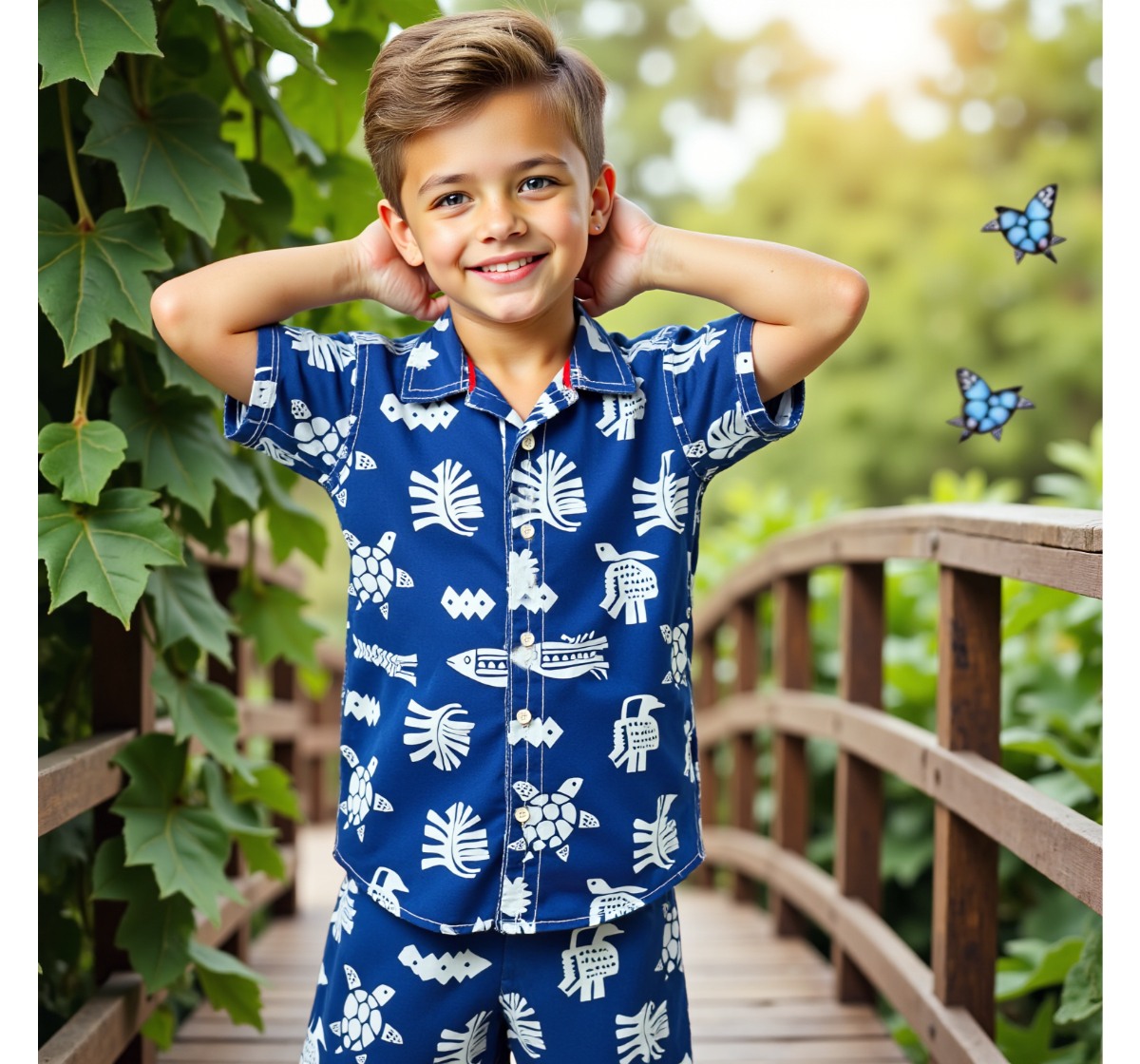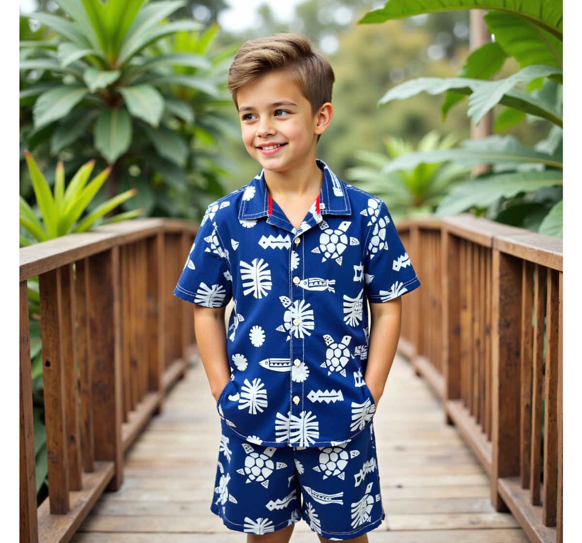Boys Printed Set Cambric Navy