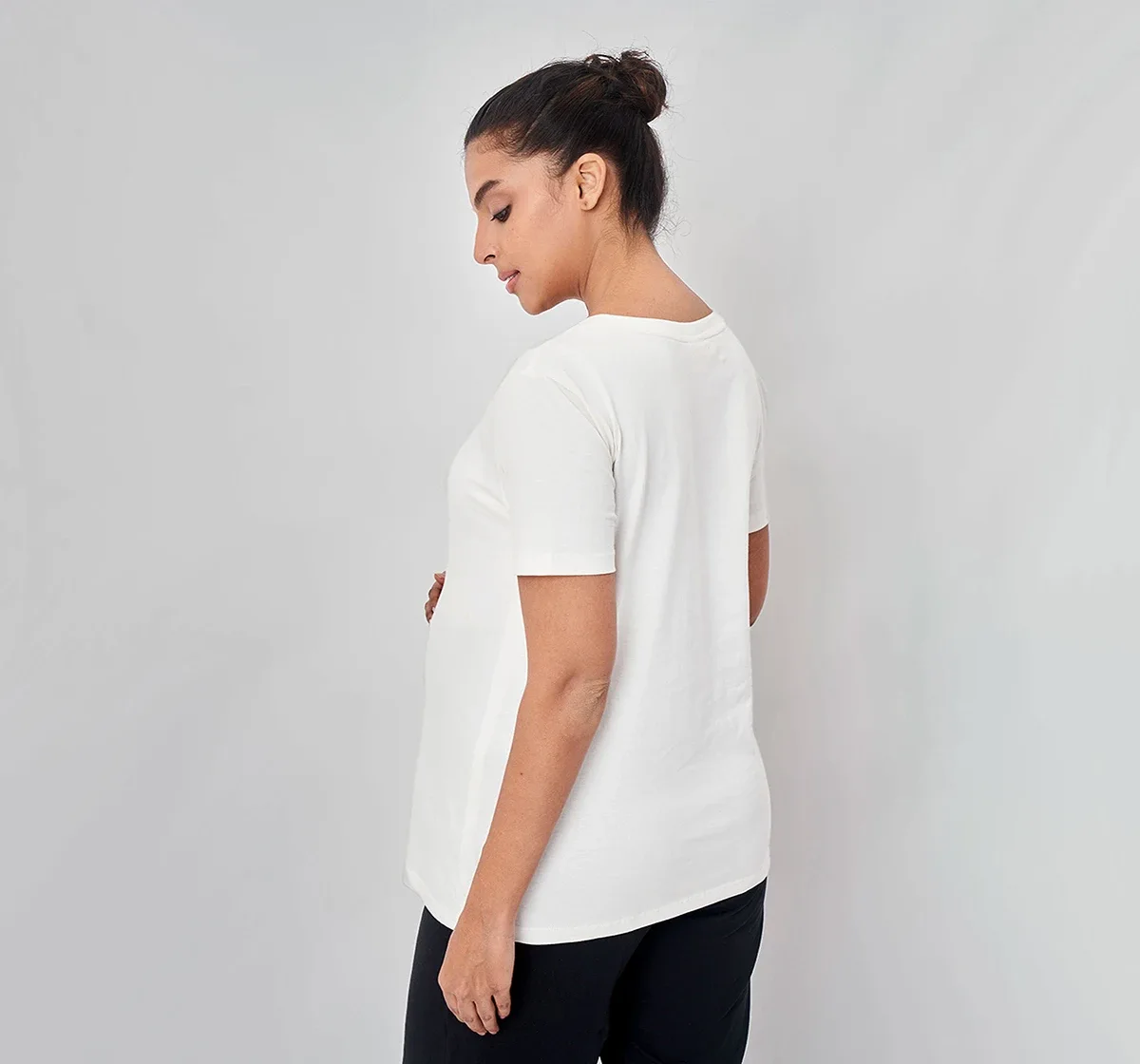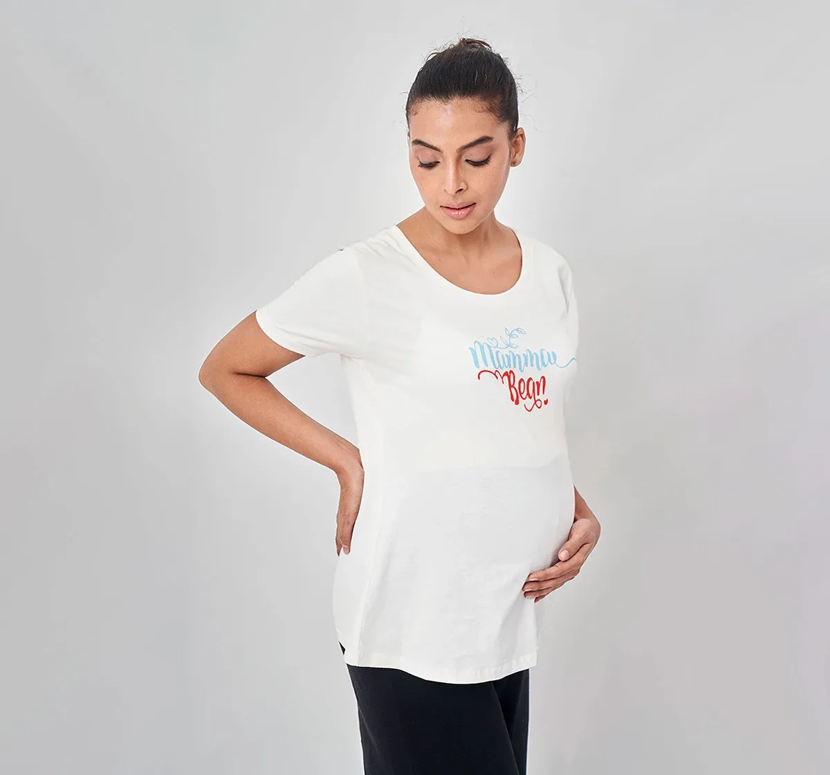 Maternity Chest Printed Half-Sleeves T-Shirt -White