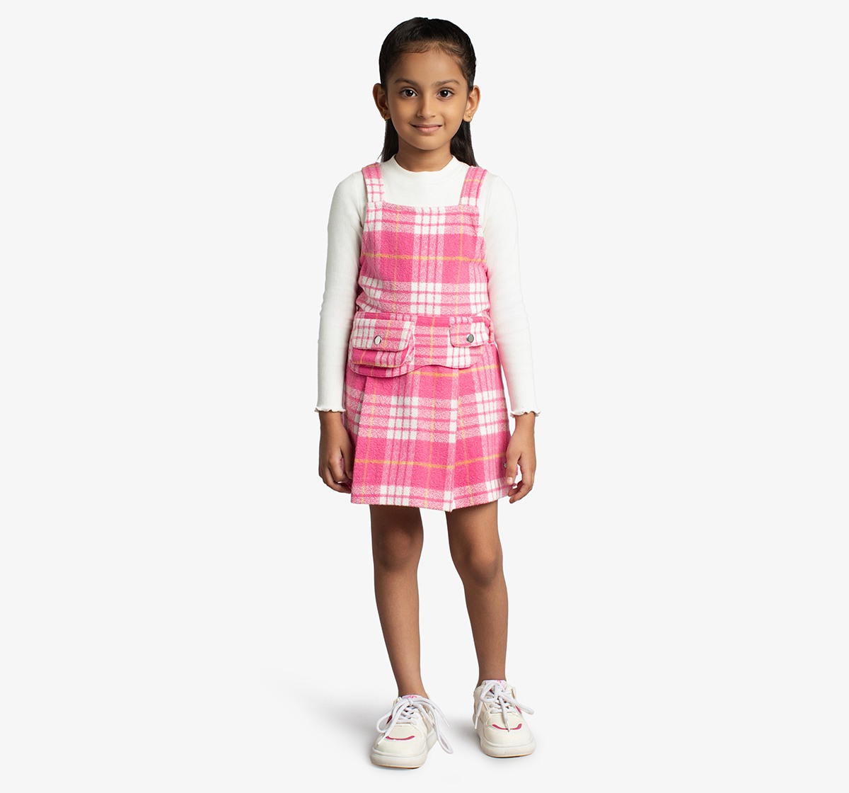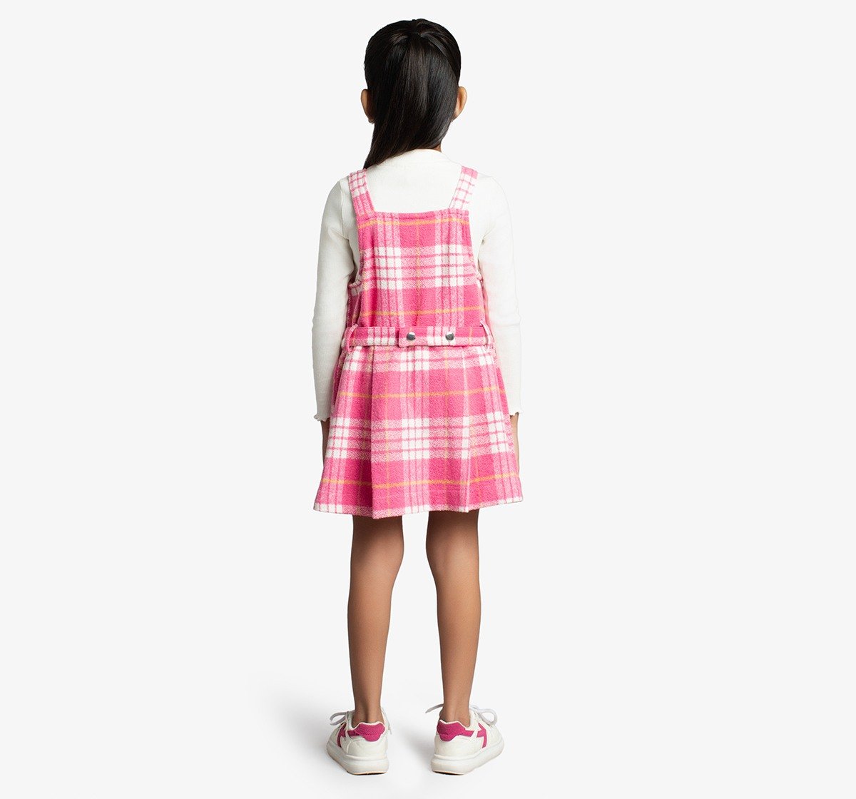 Girls Checkered Dress With Full Sleeves T-Shirt