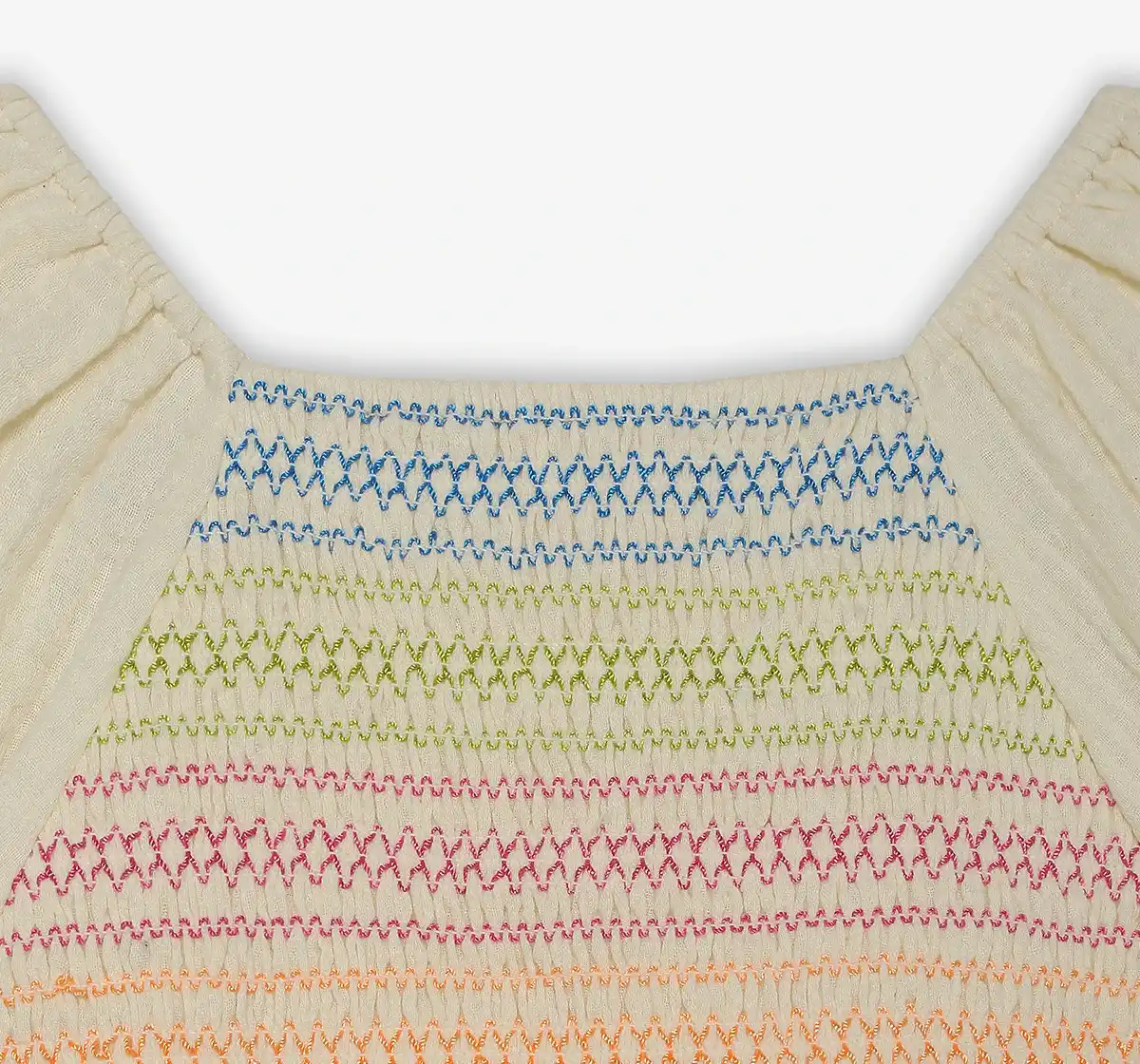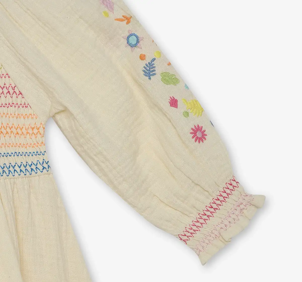 Girls Embroidered 100% Cotton Smocked Dress - Off White