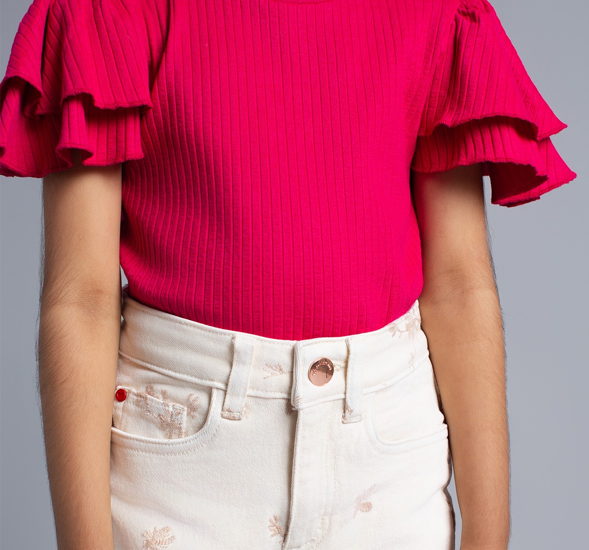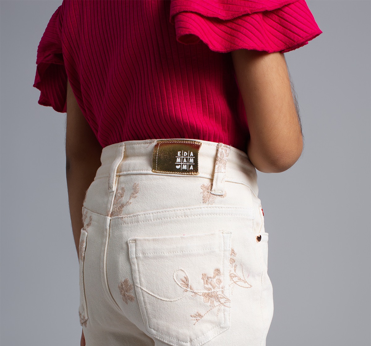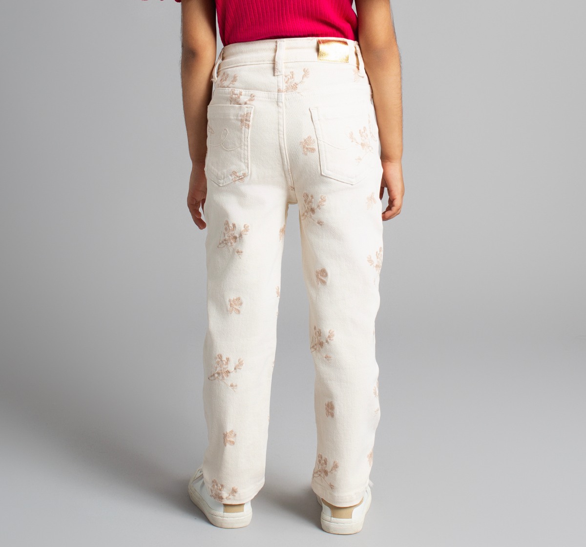 Ed-A-Mamma Girls Embroidered Slim Fit Denim Jeans - Off-White