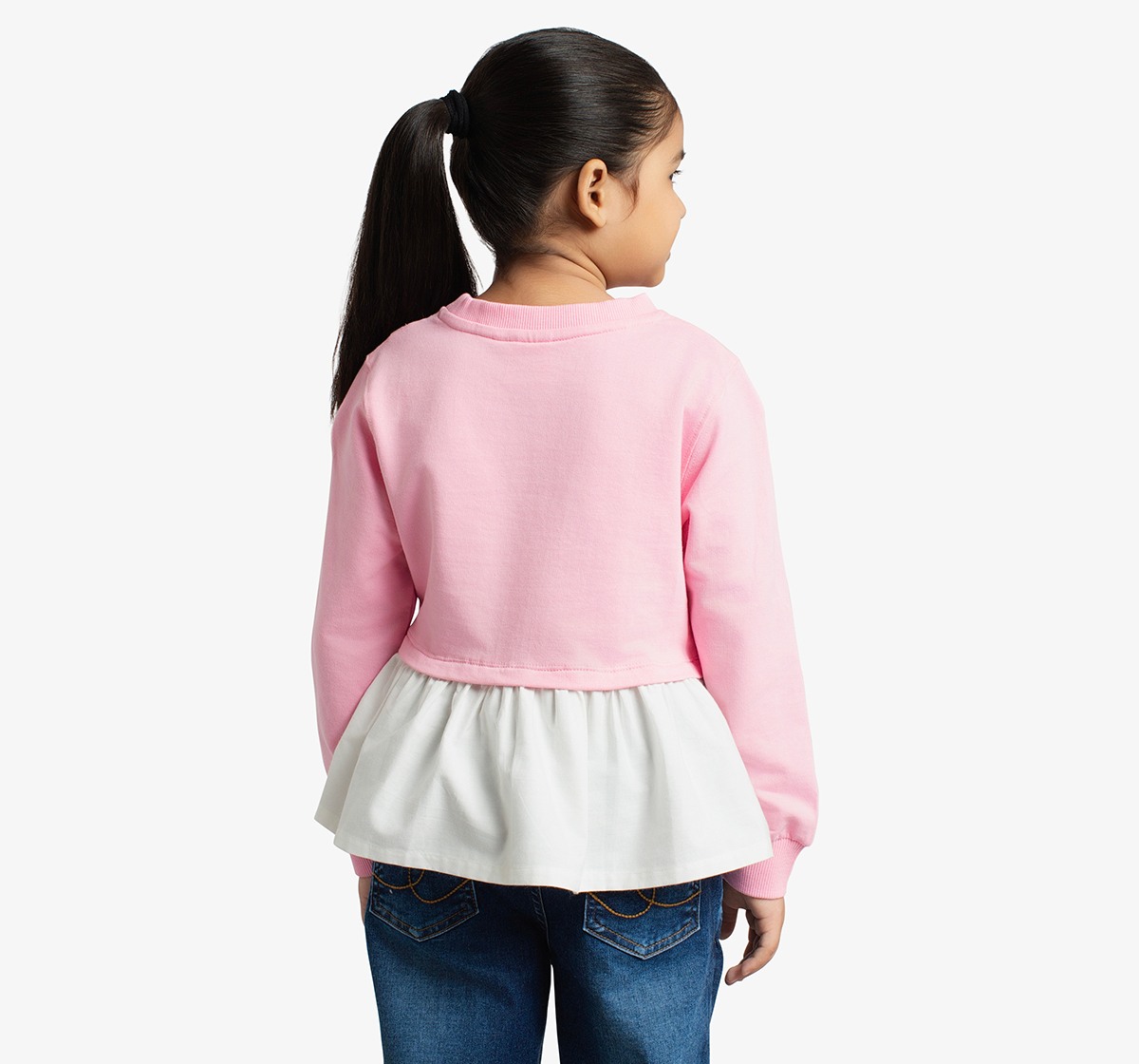 Girls Knit Woven Combination Pleated Sweatshirt