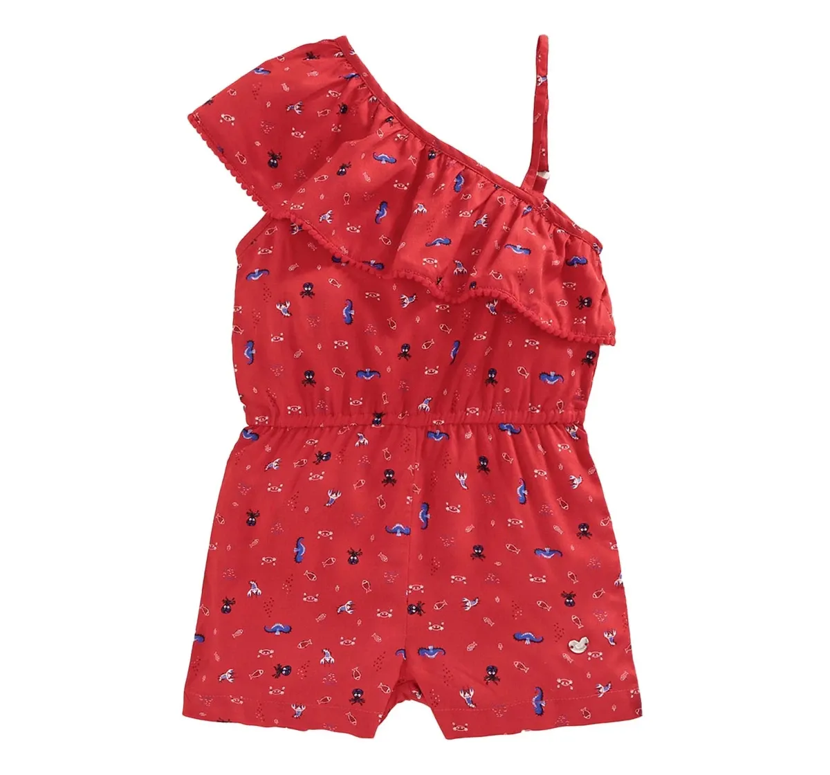 Girls Printed One Shoulder Jumpsuit - Red