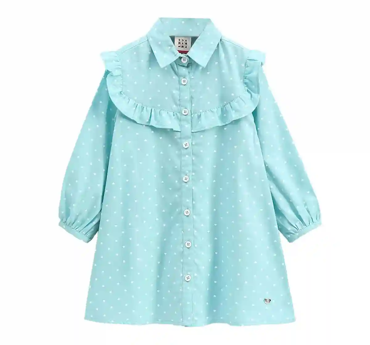 Girls Shirt Dress With Ruffle - Aqua