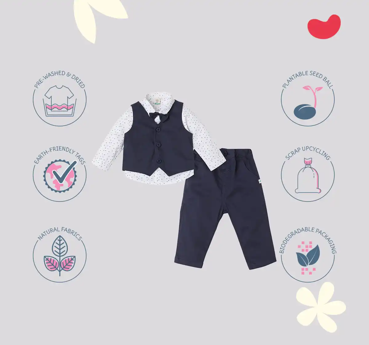 • Package Content : 1 Pc Shirt with Bow, 1 Pc Trouser, 1 Pc Waistcoat