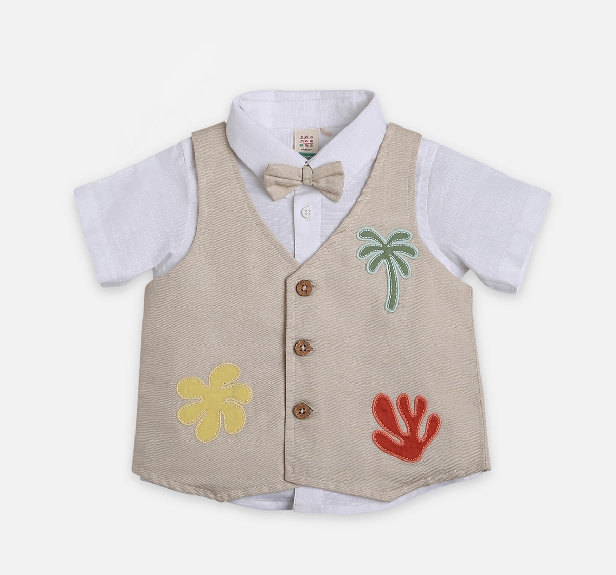 Infant Boys Shirt, Shorts & Waist Coat With Bow Partywear Set