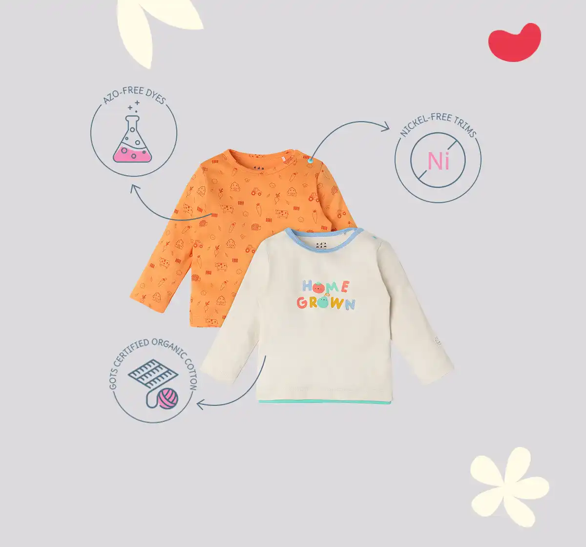 Infant Unisex Printed Organic Cotton T-Shirt - Multicolour (Pack of 2)
