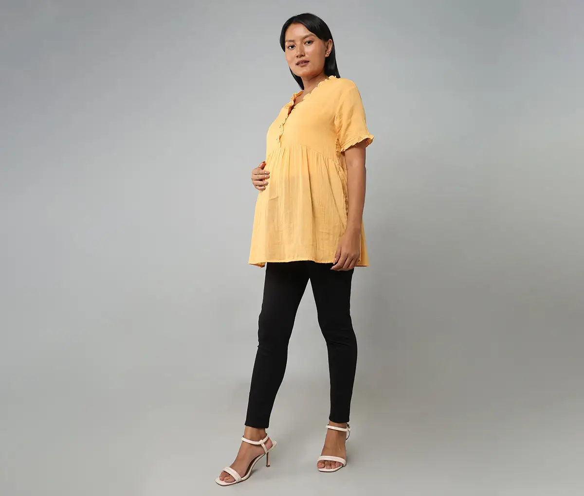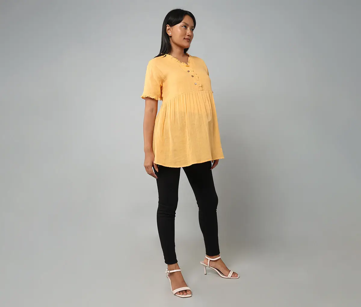 Maternity Boxy Fit Top With Ruffles - Yellow