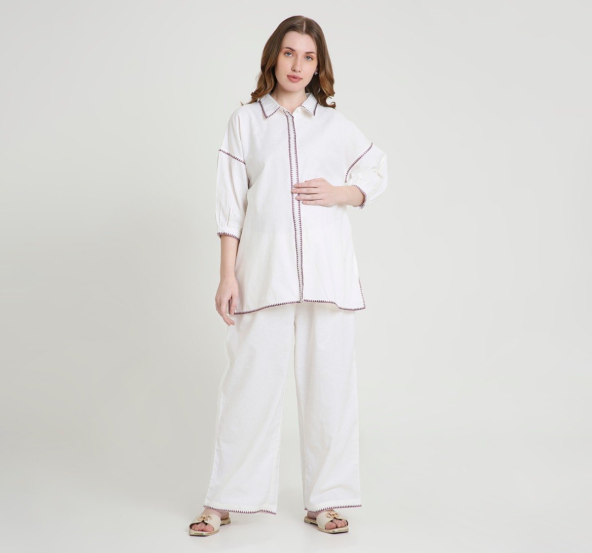 Maternity Clothing Sets 3/4 Sleeves Embroidered White