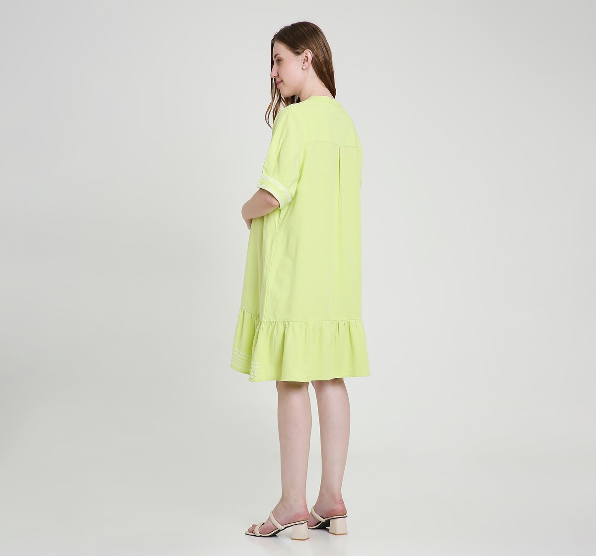 Maternity Dress Short Sleeves Embroidered Green