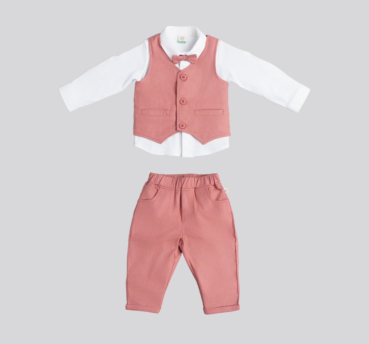Baby Boys Shirt, Pant Waist Coat & Bow 3 Pc Partywear Set